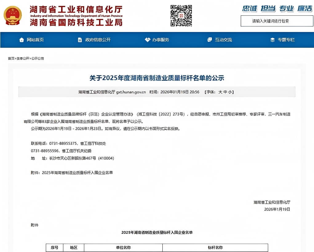 “湖南省制造業質量标杆企業”是由湖南省工業和信息化廳認定、在質量管理方面具有示範效應的企業獎項,彰顯企業通過技術創(chuàng)新、管理創(chuàng)新和商業模式創(chuàng)新,運用先進适用的質量管理方法和質量工程技術,在系統提升産(chǎn)品和服務質量的實踐過程中形成的可借鑒、可推廣的質量管理成果。此獎項的設立旨在發揮質量标杆示範引領作用,引導廣大企業學習實踐标杆經驗,提升質量發展效益,推動湖南省制造業高質量發展。